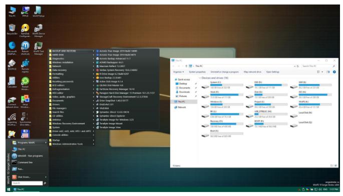 โปรแกรมสำรองข้อมูลประกอบด้วย Acronis, Nortons Ghost, Disk2vhd, Macrium และอื่นๆ ยูทิลิตี้ไดรฟ์ประกอบด้วย MiniTool, Macrorit, Defraggler, Auslogics Disk Defrag, Killdisk และอื่นๆ โปรแกรมวินิจฉัยประกอบด้วย AIDA64, Burnin Test, HWiNFO, OCCT, CPU-Z และอื่นๆ โปรแกรมกู้คืนข้อมูลประกอบด้วย EASEUS, R-Studio, Active File Recovery และอื่นๆ โปรแกรม DOS ประกอบด้วย MemTest86+, MemTest86, Ghost, BootIt Bare Metal, Gold Memory และอื่นๆ